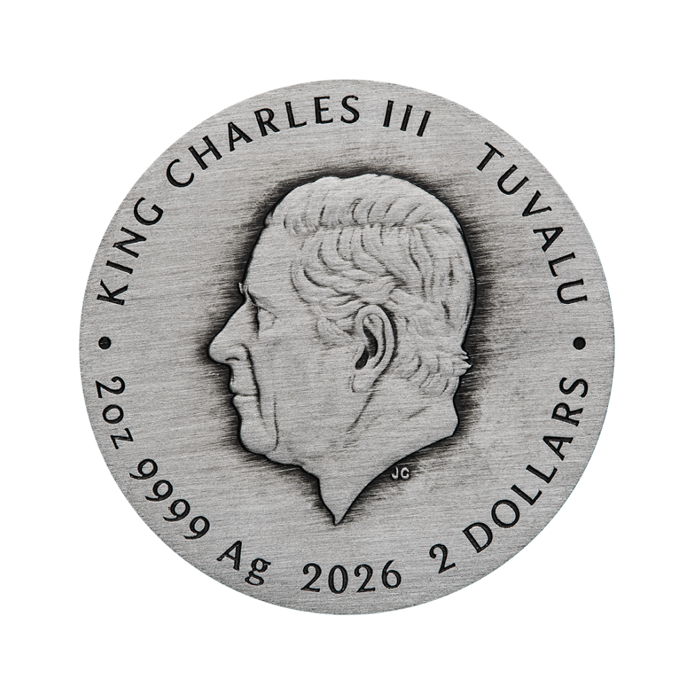 La moneda se ha "envejecido" individualmente para darle una superficie única que recuerda el desgaste de un artefacto antiguo. Como resultado de este tratamiento, el aspecto de cada moneda puede variar.