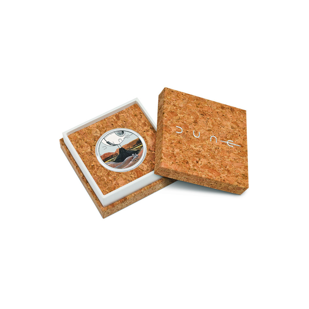 La moneda está acuñada en plata pura al 99,99%, pesa 31,107 g (1 oz) y tiene un diámetro de 40,90 mm. La emisión de 2026 tiene un valor facial de 1 TVD y está limitada a una tirada máxima de 3.000 unidades. La moneda va acompañada de un certificado de autenticidad numerado y se presenta en un estuche de corcho certificado FSC con el logotipo de Dune y un embalaje exterior temático. Se trata de una oferta para coleccionistas y aficionados a este universo.