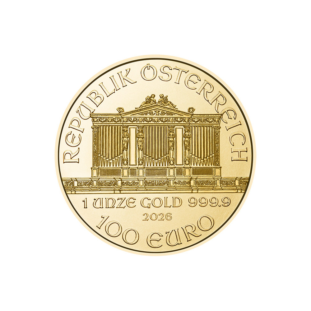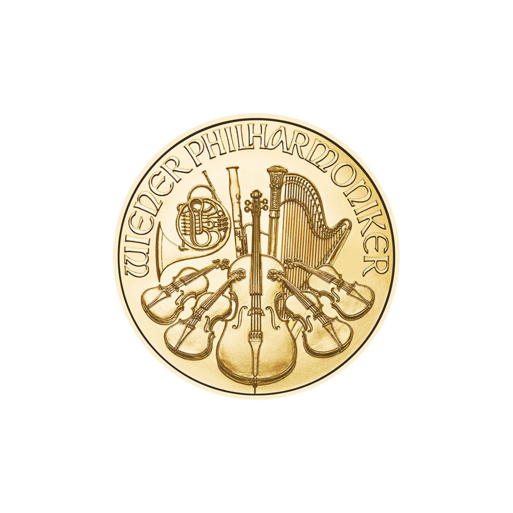 La Filarmónica de Viena debe su nombre a la famosa orquesta austriaca, una de las mejores del mundo. El anverso de la moneda de oro representa el gran órgano de la Musikverein de Viena. Debajo del órgano figura el peso de 1 onza, la ley 999,9, el año de acuñación y el valor facial de 100 EUROS. Encima figura la inscripción "REPUPLIK ÖSTERREICH". En el reverso se representan algunos de los instrumentos musicales de la Orquesta Filarmónica y en el borde superior puede verse el nombre de la orquesta y la moneda de oro "WIENER PHILHAMRONIKER". Al igual que las monedas de oro anteriores, la Filarmónica de Viena está disponible en tamaños de 1/2oz, 1/4oz, 1/10oz y 1/25oz.